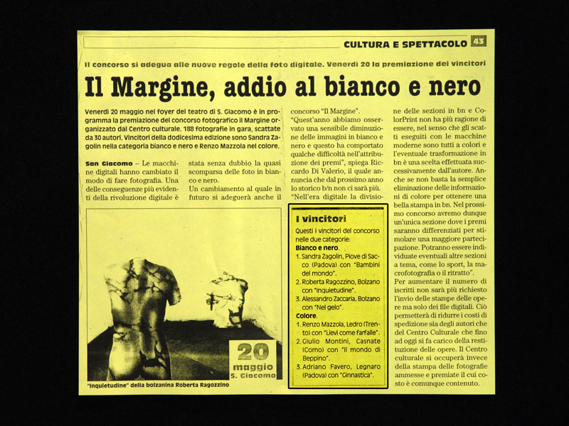 La giuria del 12° Concorso fotografico “IL MARGINE” riunitasi il giorno venerdì 6 maggio ha proceduto all’esame di: