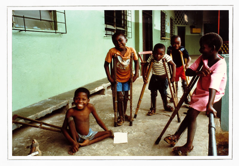 Camminano in fila indiana, lei in testa, poi la sorella, il padre, la madre. Quasi in cima cadono in tre colpiti da una potente mina antiuomo. Alphonsine è praticamente tagliata in due e sanguina copiosamente, ha una brutta ferita all’avambraccio ma il vero disastro è là, le gambe maciullate fin sopra le ginocchia, spappolate da una mina……..Alphonsine si salverà, ritroverà il sorriso anche se non avrà più le sue gambe……
