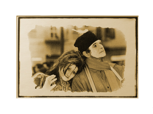 Queste immagini vagamente “Felliniane” permettono all'osservatore di addentrarsi per almeno un attimo nelle atmosfere sognanti del teatro di strada. Ottima anche in questo caso la regia e molto interessante la stampa realizzata utilizzando il viraggio seppia dove l'applicazione al pennello ha permesso di isolare solo gli elementi essenziali della foto.