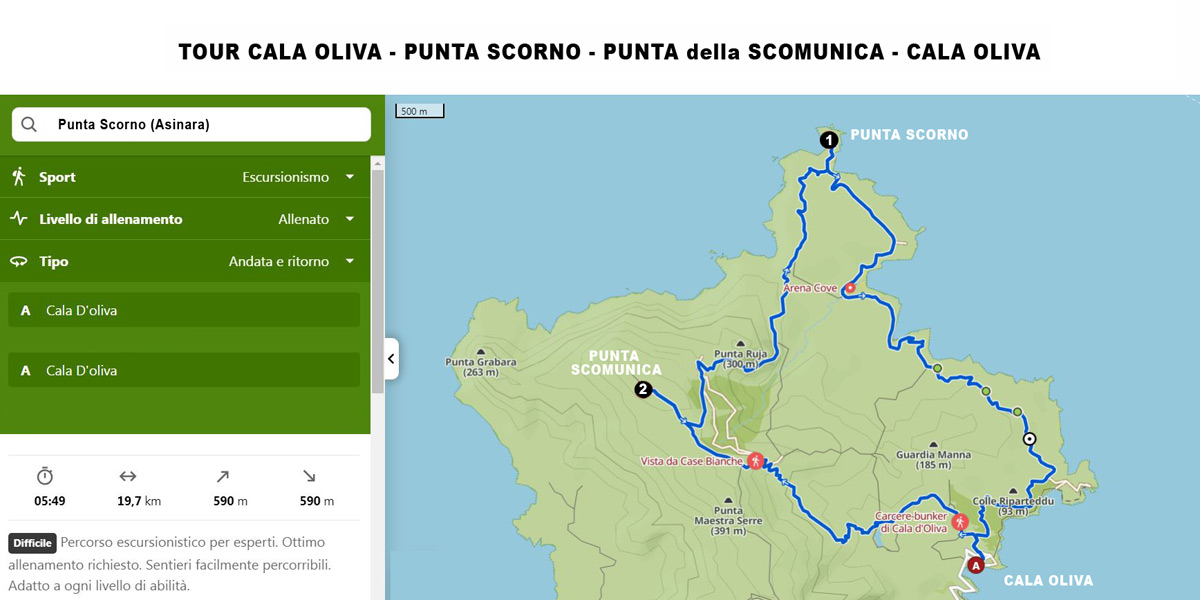Uno dei luoghi più selvaggi dell'Asinara è senza dubbio Punta Scorno che si trova nella parte settentrionale dell'isola. Qualche giovane biker affronta questo percorso in bicicletta ma il fondo è particolarmente sconnesso per cui il rischio di bucare le gomme è alto. E poi lo scrivente non è solo biker ma anche escursionista piedologo e dunque eccolo qui con zaino e scarponcini leggeri che si riveleranno non proprio ideali per le ore di cammino impiegate.