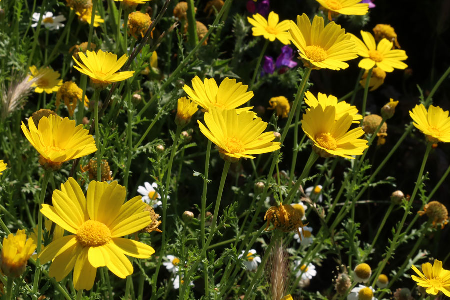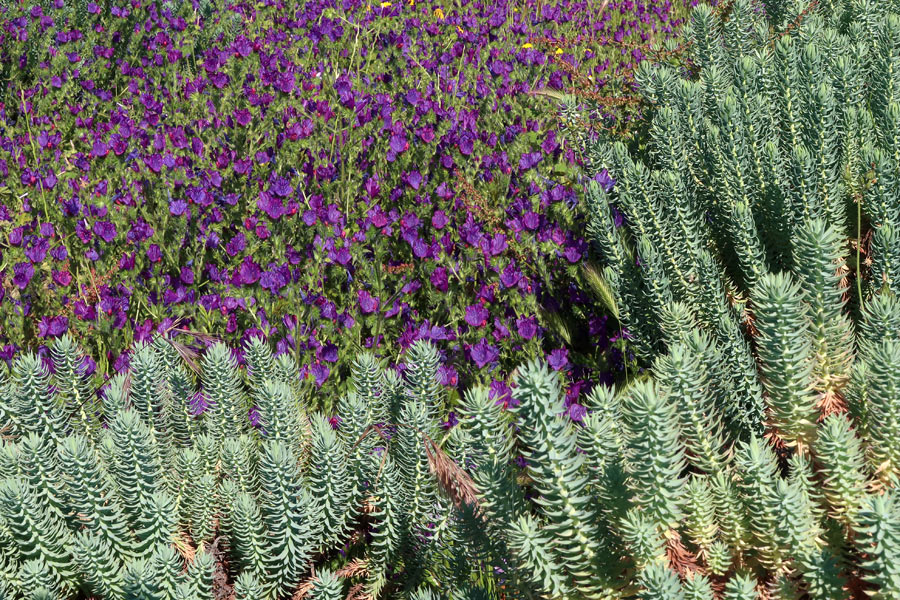 L'Echium dal colore violetto la fa da padrone e si accompagna con l'euforbia ma non manca il giallo della Geblionis, una bella asteracea: