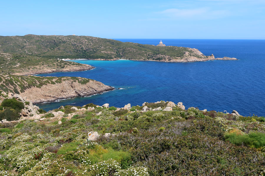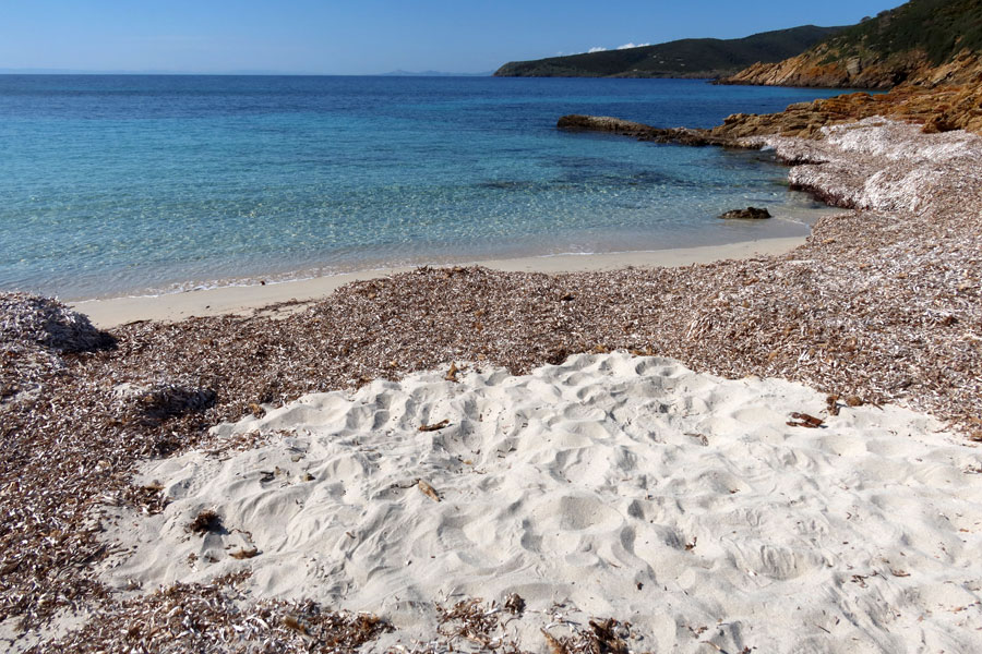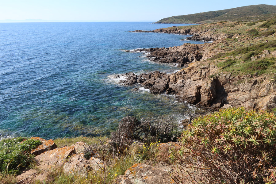 Altre specie hanno disegni favolosi come quel fiore probabilmente sfiorito che pare una stella del firmamento natalizio. La costa è un susseguirsi di insenature e il mare è quello verde smeraldo di un'isola abbastanza lontana dai centri abitati della Sardegna. Prevalentemente rocciosa non mancano comunque tratti sabbiosi dove però è vietata la balneazione trattandosi di riserva integrale.