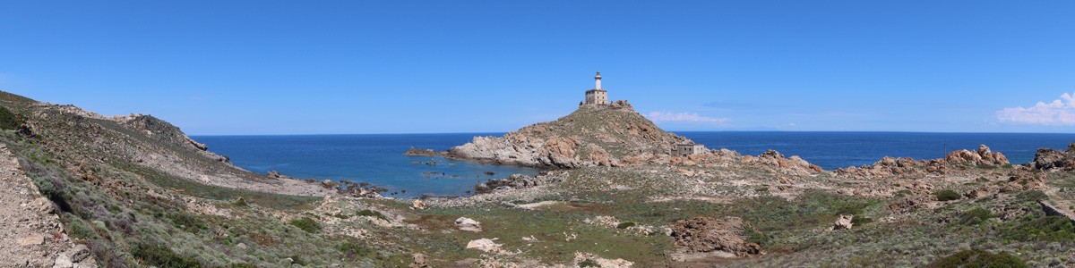 Un'altra altura e poi ecco che appare sullo sfondo il faro di Punta Scorno. Sembra vicino ma non è così viste le tre insenature che dobbiamo superare.