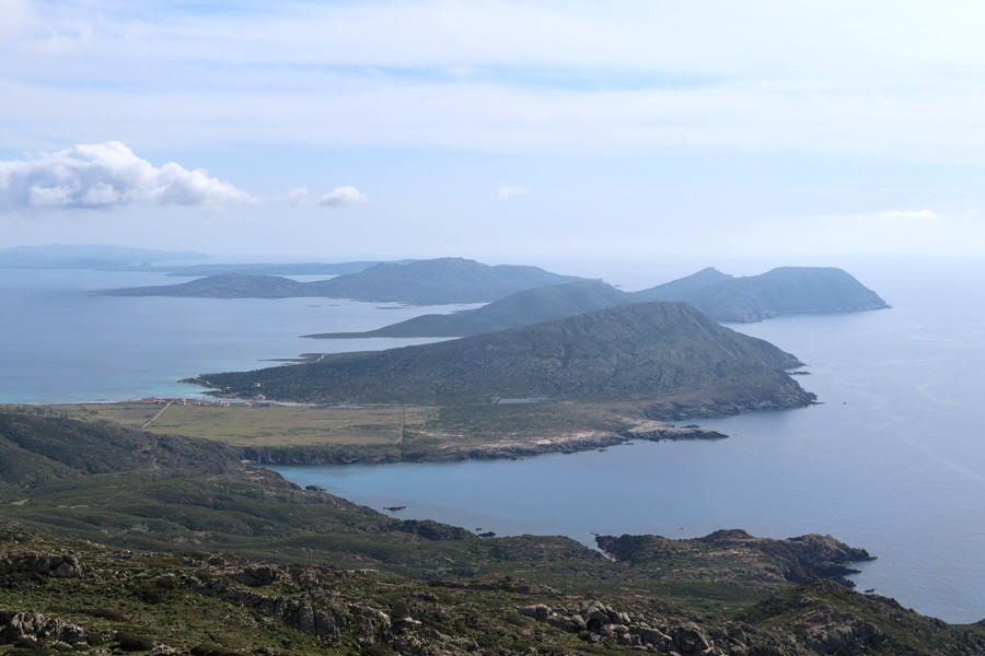 Ed eccoci finalmente sulla vetta che permette di abbracciare con lo sguardo la parte Sud dell'isola; peccato per quella velatura che sfuma i colori e i contorni: