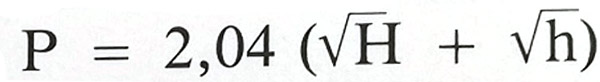 Il coefficente 2,04 si discosta da quello calcolabile analizzando la figura e la tabella che segue. Il valore maggiore tiene conto della rifrazione atmosferica che contribuisce ad aumentare la portata.