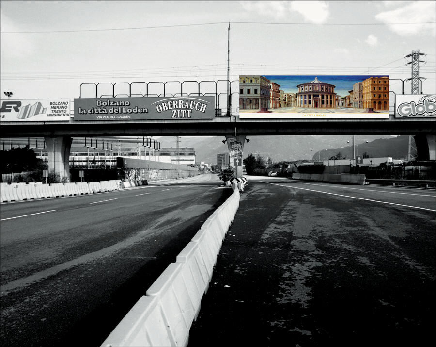 " La città dell'ironia " nasce a partire da alcuni scatti in bianco e nero eseguiti prevalentemente nella periferia e zona industriale di Bolzano.