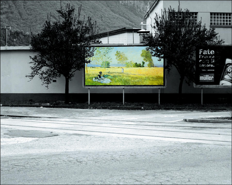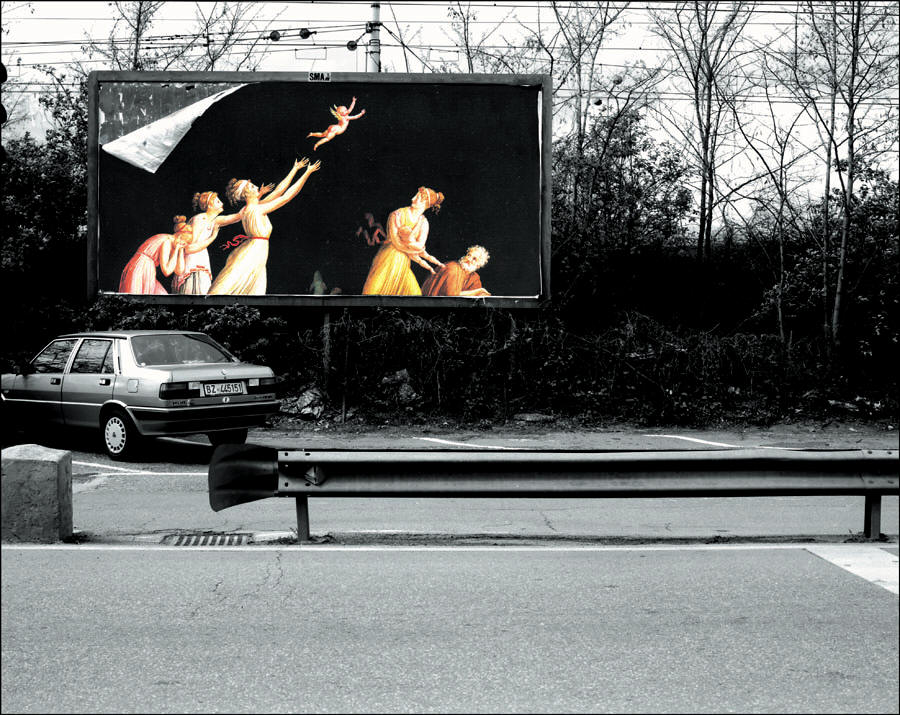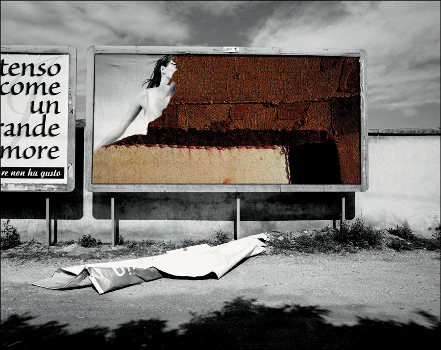 E Burri con i suoi sacchi? I suoi stracci? Ebbene stracciamolo quel manifesto pubblicitario! Tra parentesi è la fotografia che preferisco, la più grafica ed elegante.