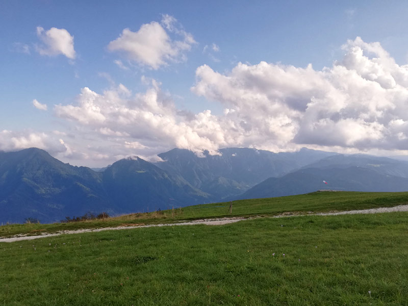 Tornando al percorso, raggiunto il bivio da cui si scende al passo, facendo una bella inversione a V si sale verso il Monte Avena. Sosta d'obbligo è il prato da cui si lanciano i Volisti.