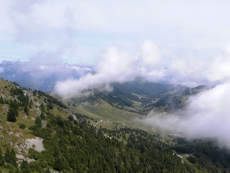 Le condizioni meteorologiche erano mediamente peggiori anche se sul tardi le nuvole sono volate via. Sul passo la visuale è doppia: