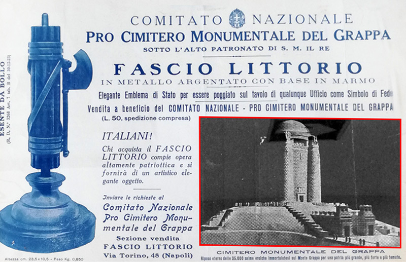 Nel frattempo gli architetti progettavano le forme del sacrario mettendoci tutta le fantasia di cui disponevano: fari della vittoria, altari della patria riconsacrata e altro ancora...