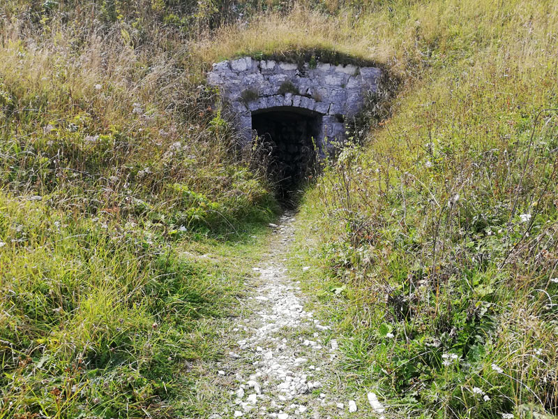 Diciamo che la visita lascia un po' a desiderare, un lungo corridoio con due uscite solo sul lato Est, quello che domina la Valle delle Mure e la catena Solaroli- Fontanasecca. Ivi stava il vero confine guerreggiato che nessun todesc ha mai messo piede su Cima Grappa. Però da lì gli stessi todesc bombardavano la roccaforte con tutti i calibri che le buse intorno non si contano.