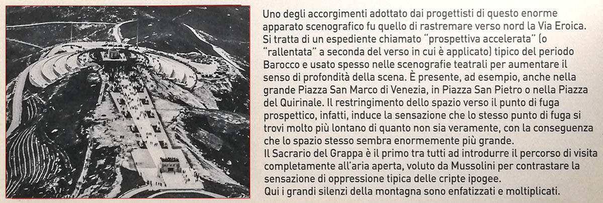 Il sacrario del Grappa come tutti quelli della Prima Guerra, sono stati costruiti durante il fascismo che doveva esaltare le gesta eroiche dei caduti che da lì a poco ce ne sarebbero stati degli altri: