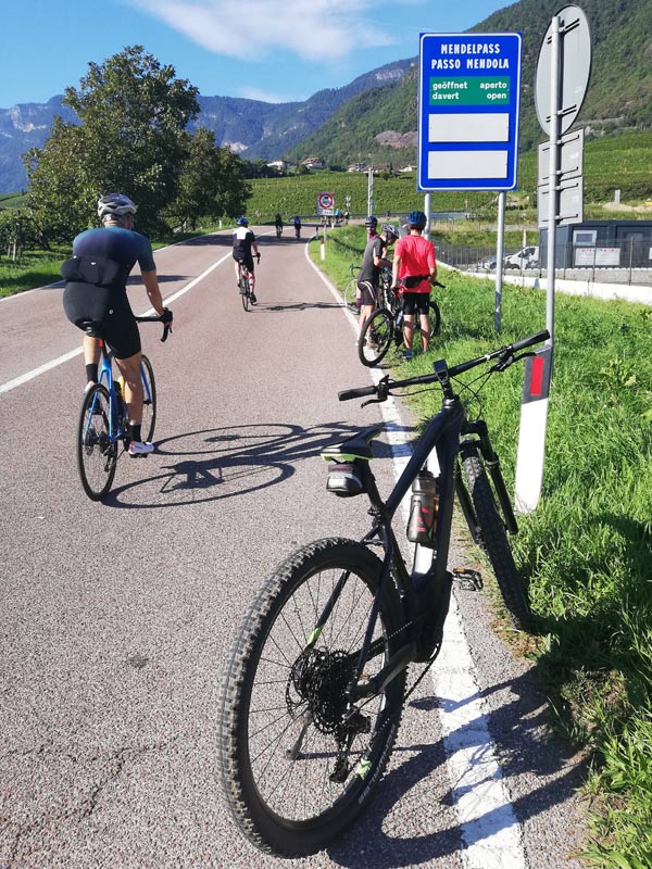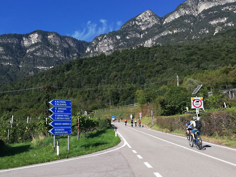 Si affronta poi la faticosa salita che collega Nalles a Prissiano, un 3km molto tosti dove perdi un 20 % di batteria e non solo. Breve sosta per fare acqua e una foto che il tour in questione è stato documentato più volte negli anni precedenti.