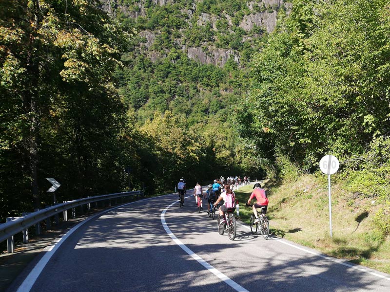 Mi attardai fin dopo le 14 e poi inforcai la bici e imboccai una ciclabile imboscata e alquanto erta che dal lago sale su fino al passo. Poi giù fino a casa in un batter di ciglia.