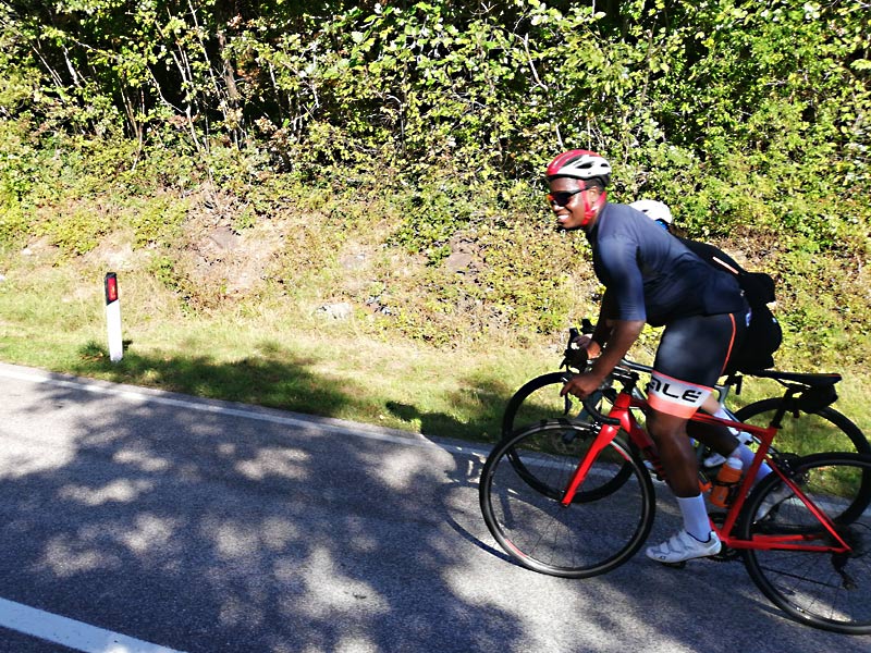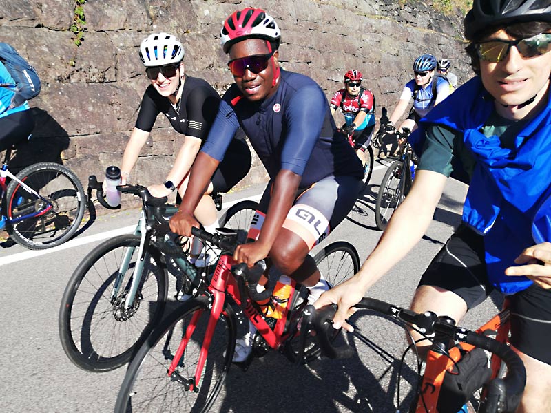 Nel gruppo c'era questo baldo ragazzo di colore che voleva attaccarsi alla ebike con una corda...ma dissi al giovin che vista la sua etade doveva soffrir per meglio goder dell'impresa e mostravisi valente alla bionda accanto.....