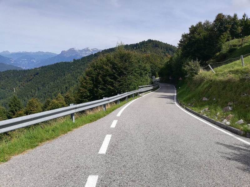 La strada in questione è una deviazione rispetto a quella che porta al Passo di Croce d'Aune (m.1011) un passo che lascia molto a desiderare a parte il monumento dedicato a Tullio Campagnolo (1901-1983) che su queste rampe ebbe una visione: