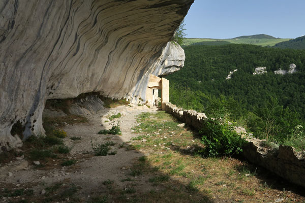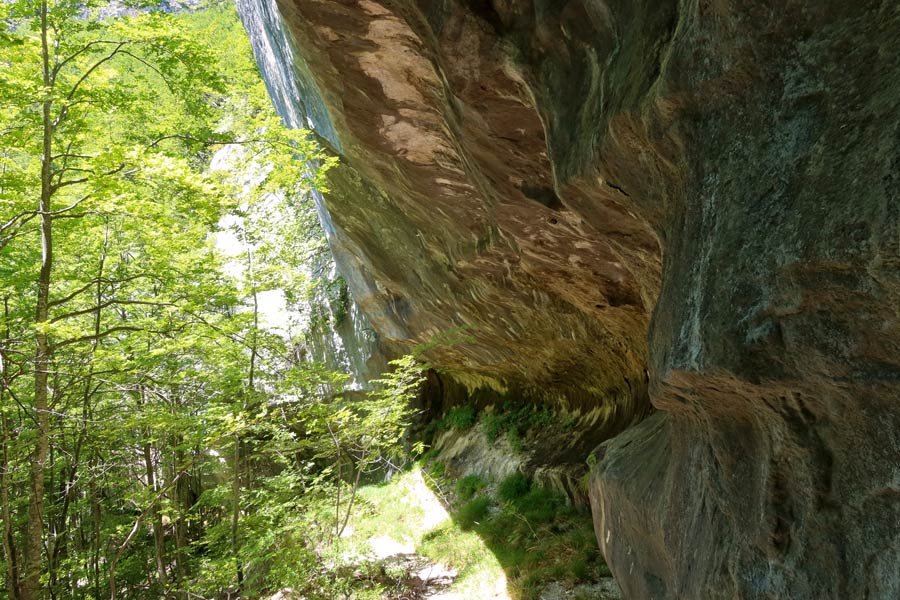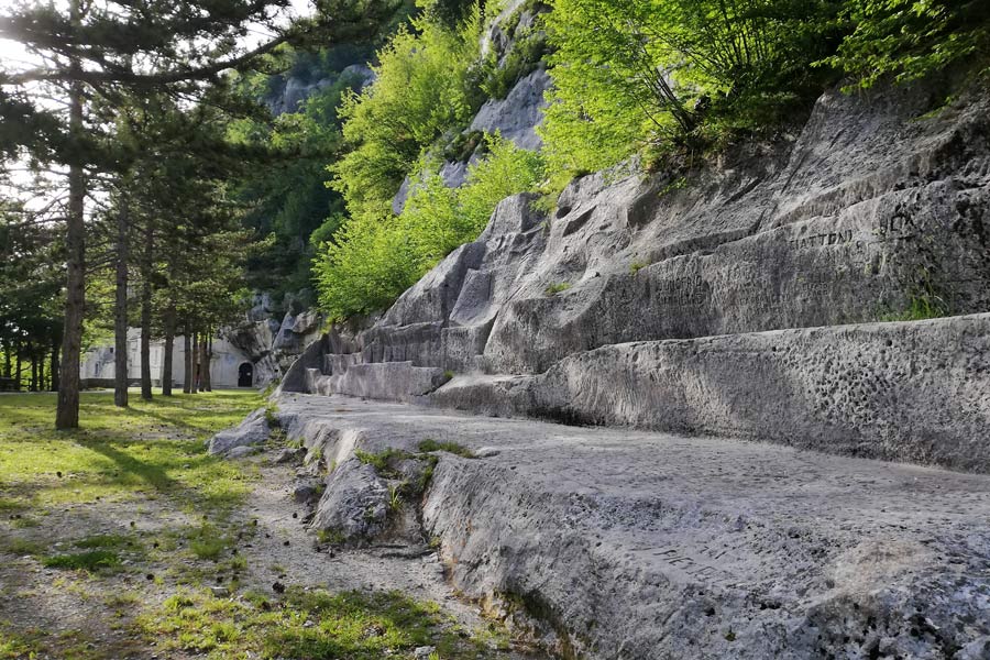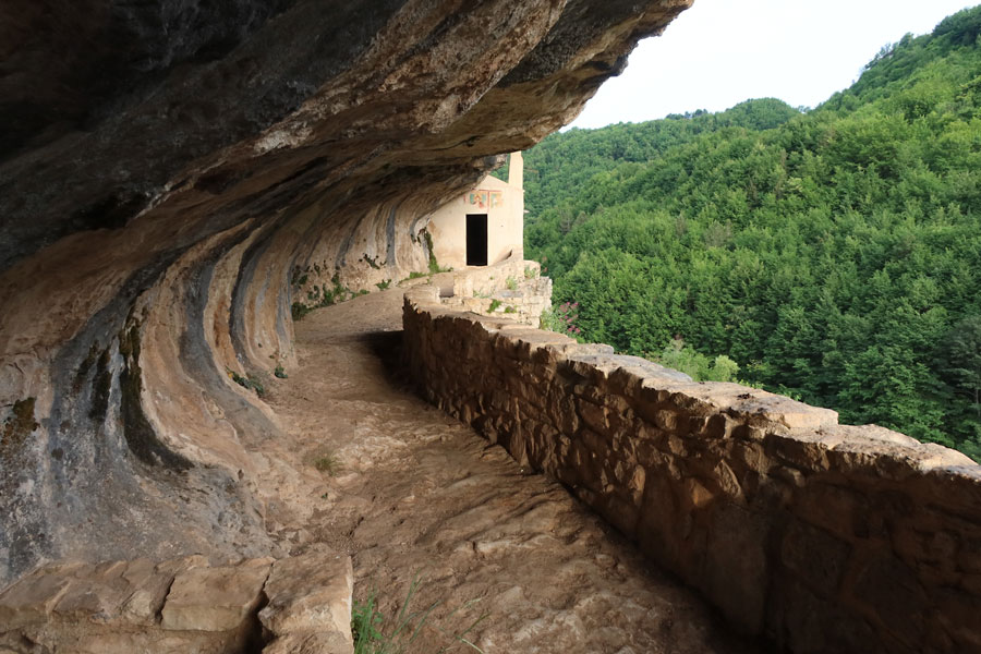Ad un certo punto superato il bosco, il sentiero scende e perde quota con somma gioia degli escursionisti. Non basta; l'eremo invisibile è dietro l'angolo " ma qui non si passa " come recitava il moto dei soldati del Piave!