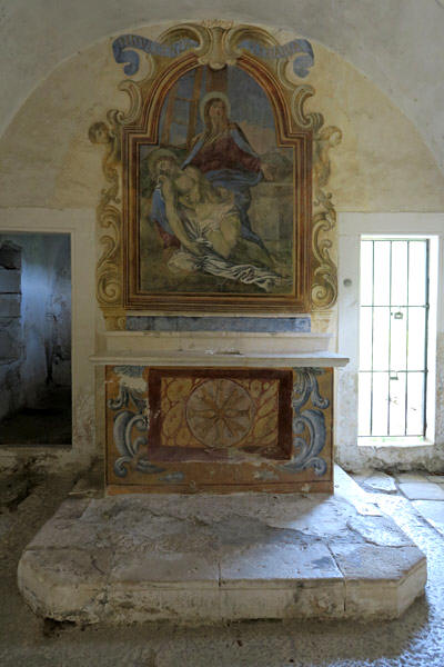 L'ambiente è unico e suggestivo e ancora una volta il nostro pensiero va alla fatica fatta dai monaci e dalle maestranze, per ricavare questi spazi in un ambiente così difficile.
