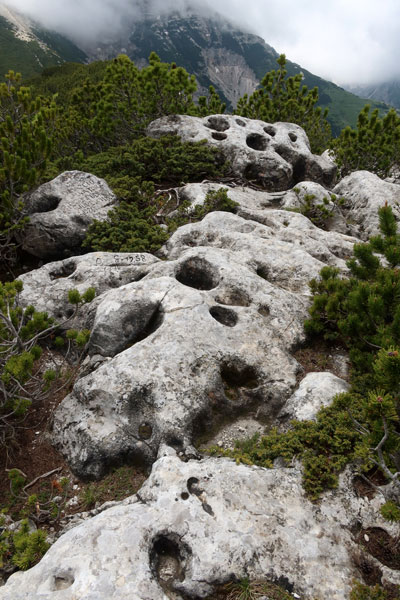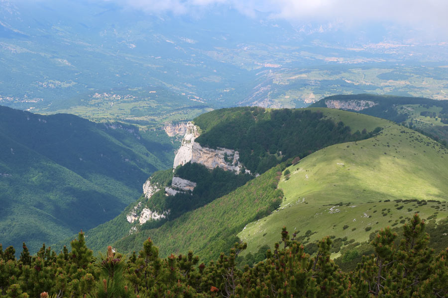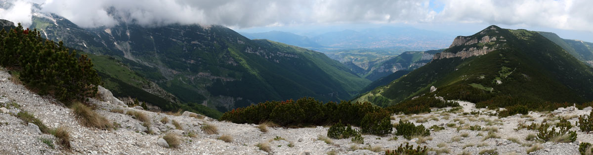 E finalmente dopo due ore di cammino dal Blockhaus eccoci alla tavola imbandita, quella dei Briganti. La zona evidentemente rocciosa ma coperta in parte dai pini mughi si discosta appena dal sentiero e si affaccia sul versante occidentale della montagna.